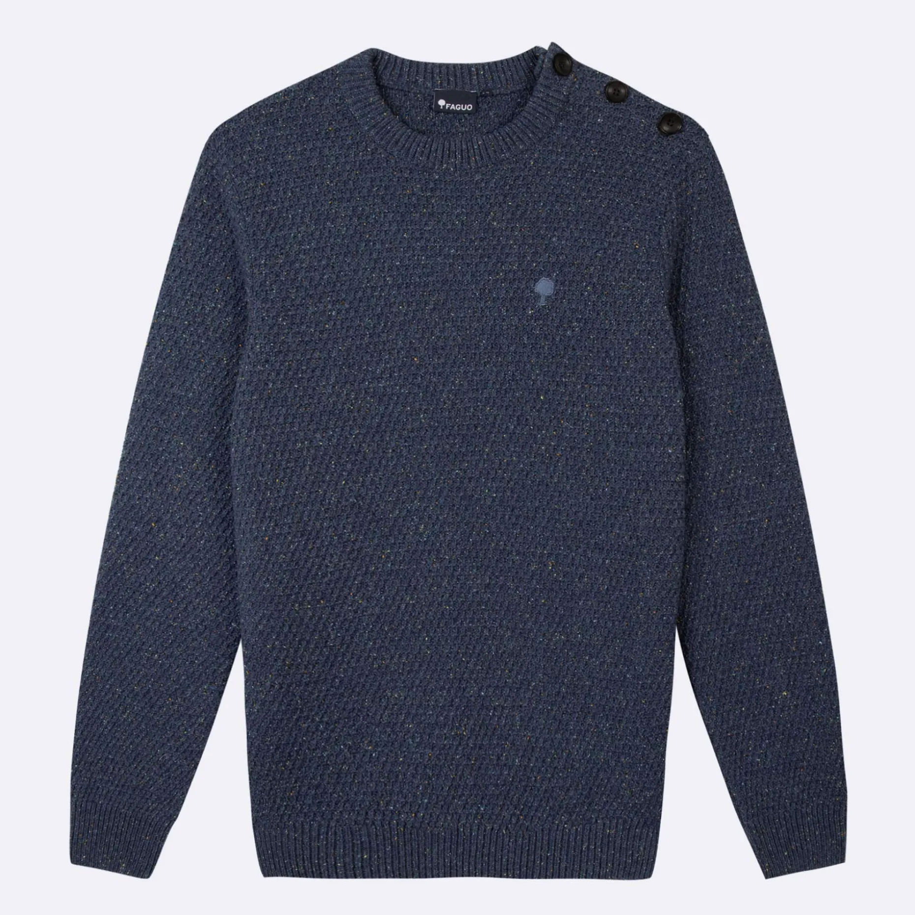 Inspire Des Pulls Marins, Le Lucio Bleu Chine Revisite Un Classique. On Retrouve Les Boutons Sur Le Col Et Le Point De Tricot En Relief. La Coupe Est Ajustee. Il Est Ideal Pour Un Look Epure.