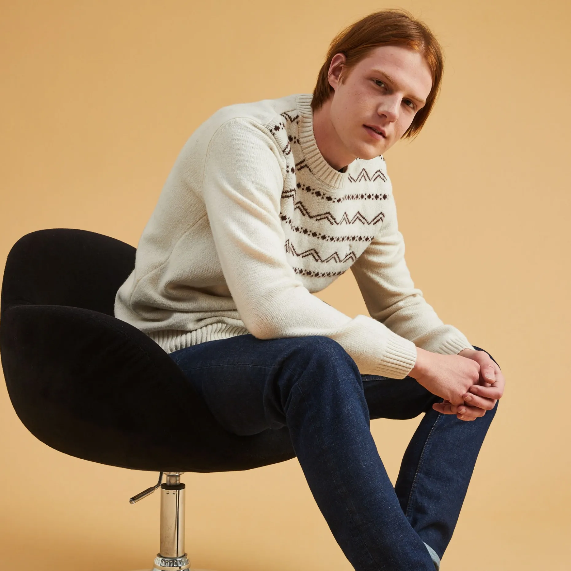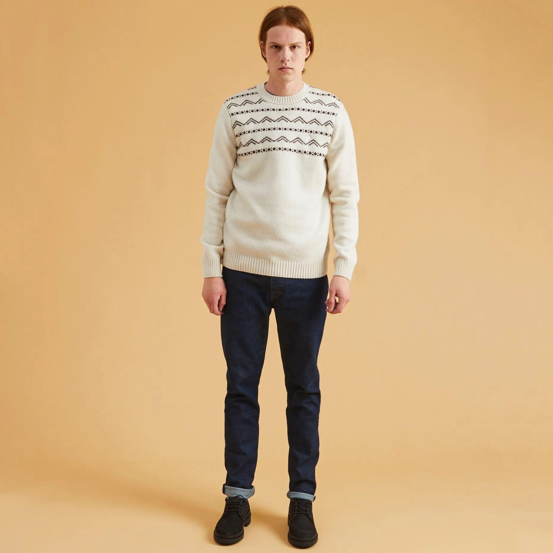 Vercors Est Un Pull En Jacquard Inspire Par Des Pulls Vintages Des Annees 70. Le Tricot Est Travaille Avec Des Jeux De Points Et De Couleurs, Sur Une Coupe Simple Pour Mettre En Valeur Les Motifs.