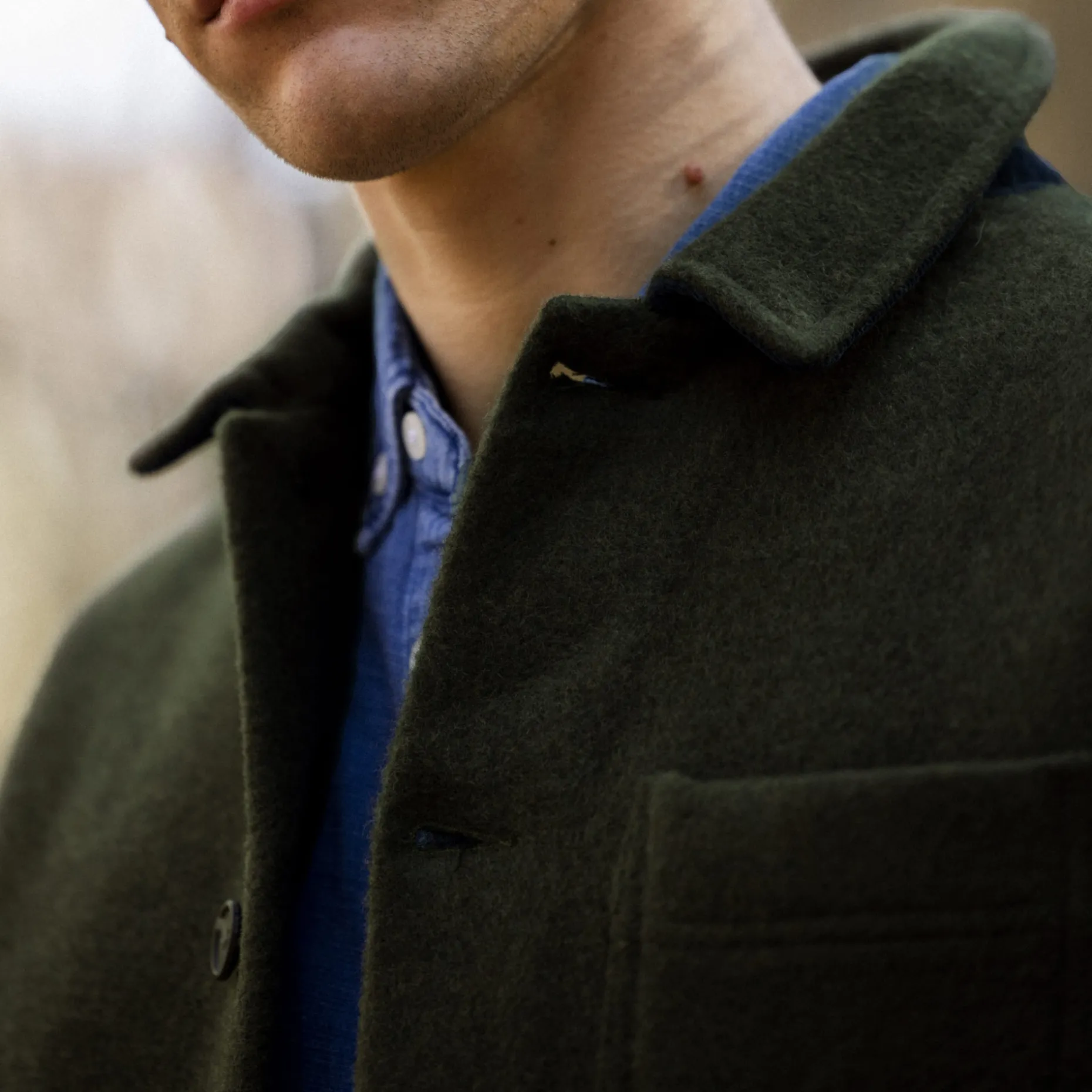 La Veste Lorge Verte Reprend Les Codes Du Workwear Avec Ses Poches Rectangulaires Et Son Col Pointu, Ici Detournes Par L’Utilisation D’Une Matiere En Laine. La Coupe Legerement Ample Garantit Le Confort.