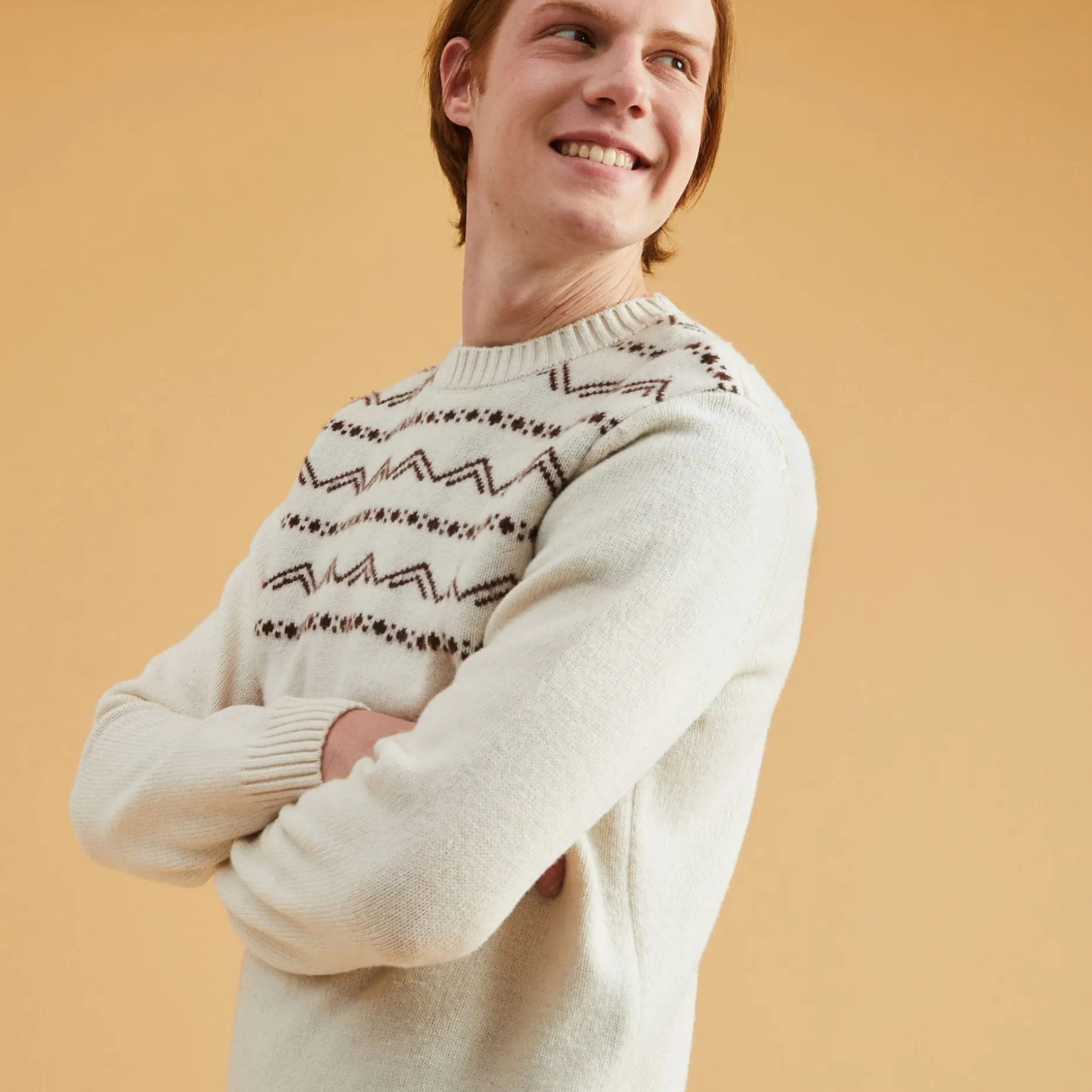 Vercors Est Un Pull En Jacquard Inspire Par Des Pulls Vintages Des Annees 70. Le Tricot Est Travaille Avec Des Jeux De Points Et De Couleurs, Sur Une Coupe Simple Pour Mettre En Valeur Les Motifs.
