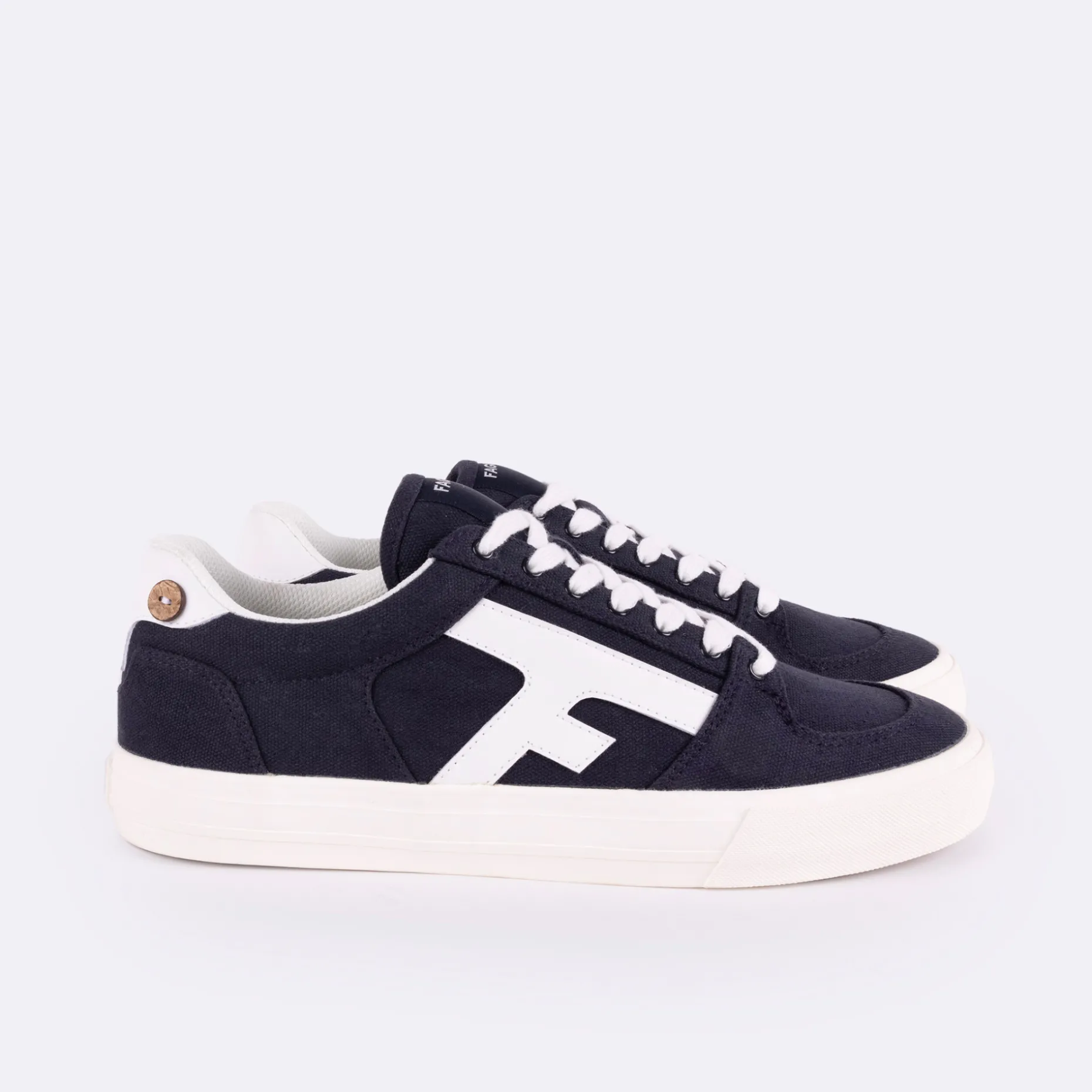 La Walnut Bleu Marine Au Style A La Fois Vintage Et Moderne S’Inspire Des Chaussures De Skate. Son Logo F Reconnaissable Sur Le Cote Et Sa Semelle Travaillee Dans Notre Studio En Font Un Modele Intemporel. Elle S’Associe A Merveille Avec Vos Pieces Preferees Pour Un Look Decontracte.